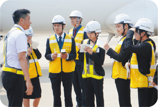 岡山桃太郎空港をはじめ、高松空港、広島空港、徳島阿波おどり空港など各地の空港と連携し、各空港の見学会や現役スタッフの方々から直接学ぶ実践授業を実施。また、学科設立以来全国でも珍しい長期インターンシップを行っています。