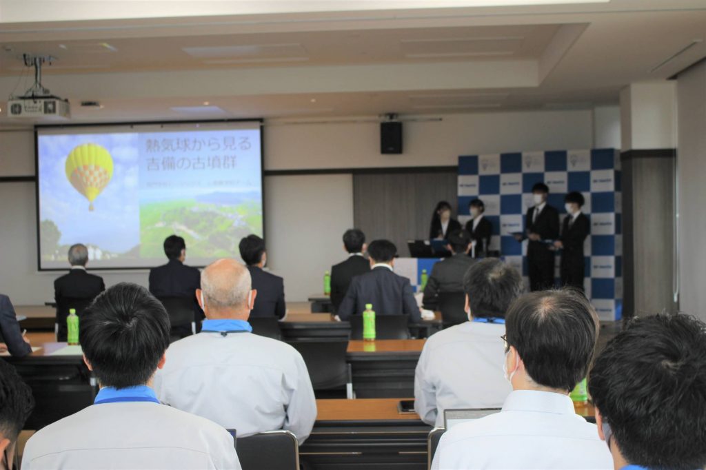 「ボランティアガイド」の認定証を受け取った学生たちが、
